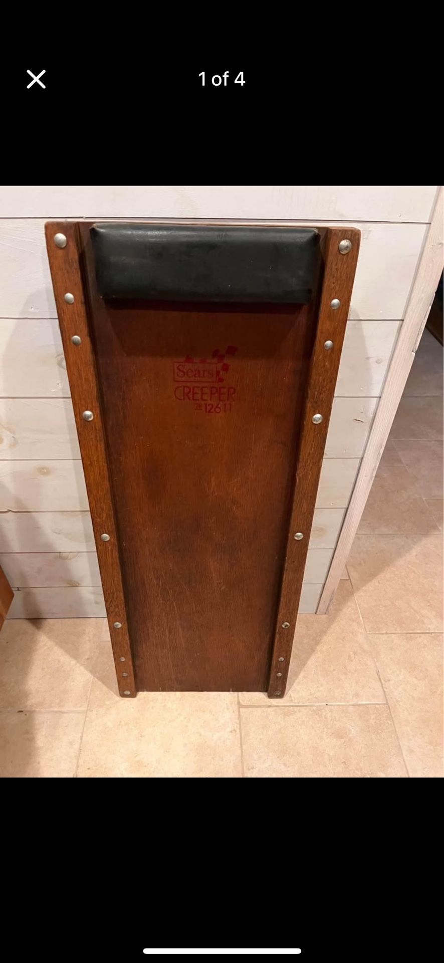 Vintage Sears Creeper. Could be used as a creeper for auto repair but it has been cleaned and refinished to possibly be converted to a coffee table perhaps??!! Still has original Graphics and hardware/wheels. A very cool vintage piece!