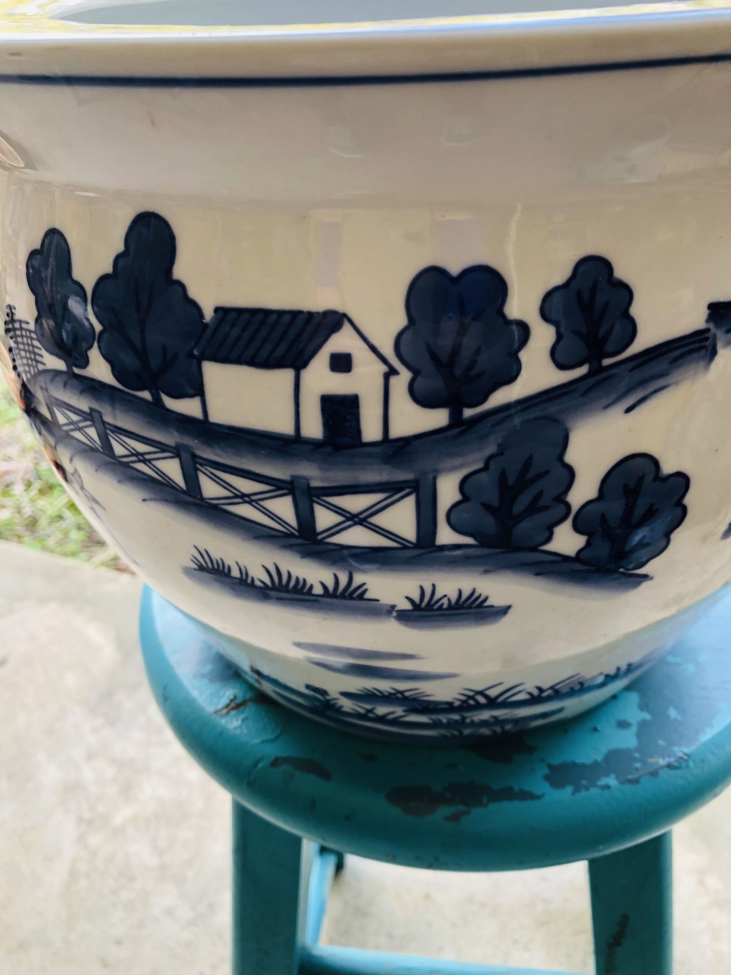 Blue and White Ceramic Flower Pot