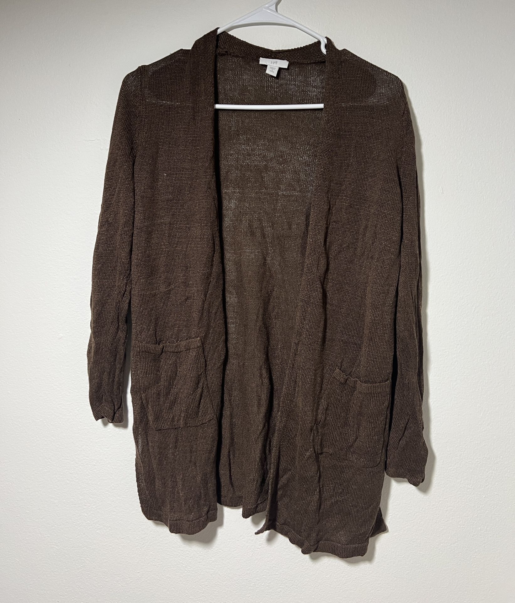 J Jill Open Knit Linen Blend Open Front Cardigan Sweater Size S Brown