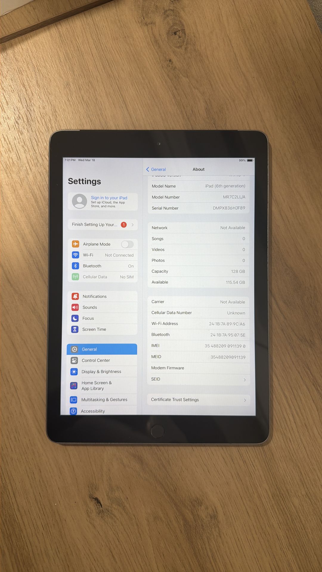 Excellent condition No restrictions iPad 6th gen with WiFi and cellular 128GB If you have more questions about the model please Google it - model is in the pictures