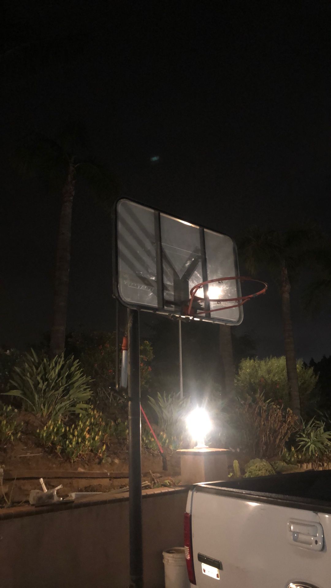 Basketball hoops extends up to 12 feet and as low as 8 I believe I’m not too sure good condition has rolling wheels and is filled with sand youll need truck to pick up Open to offers