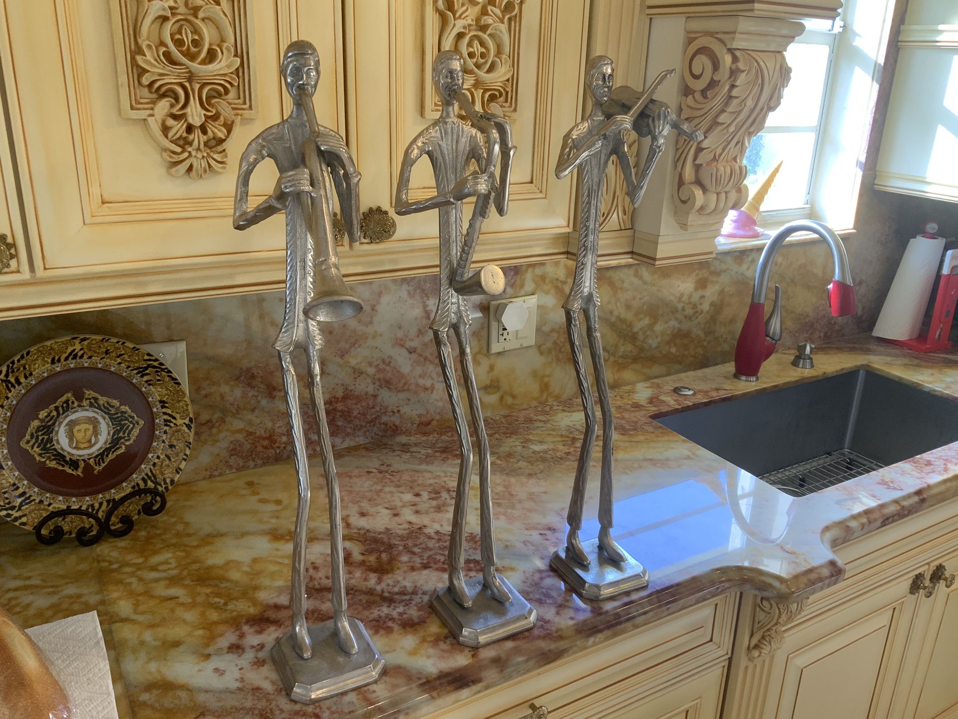 Tall Solid Metal Aluminum Finish Musicians Sculptures Standing & Playing Music. Gorgeous Pieces To Be On A Mantle. Pick Up Only. Cash Only.