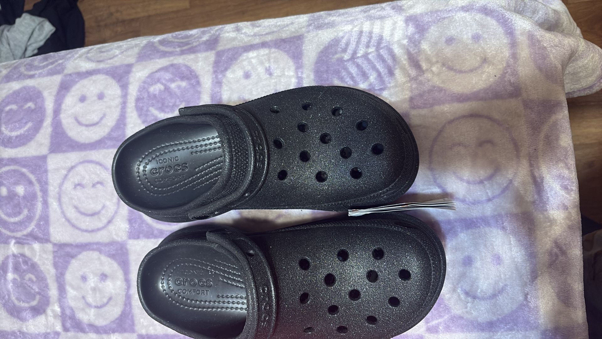 Crocs black with glitter and pink crocs with glitter