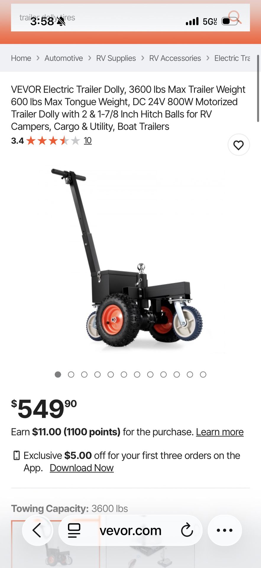 New Vevor trailer dolly. Bought but does not work well on gravel.