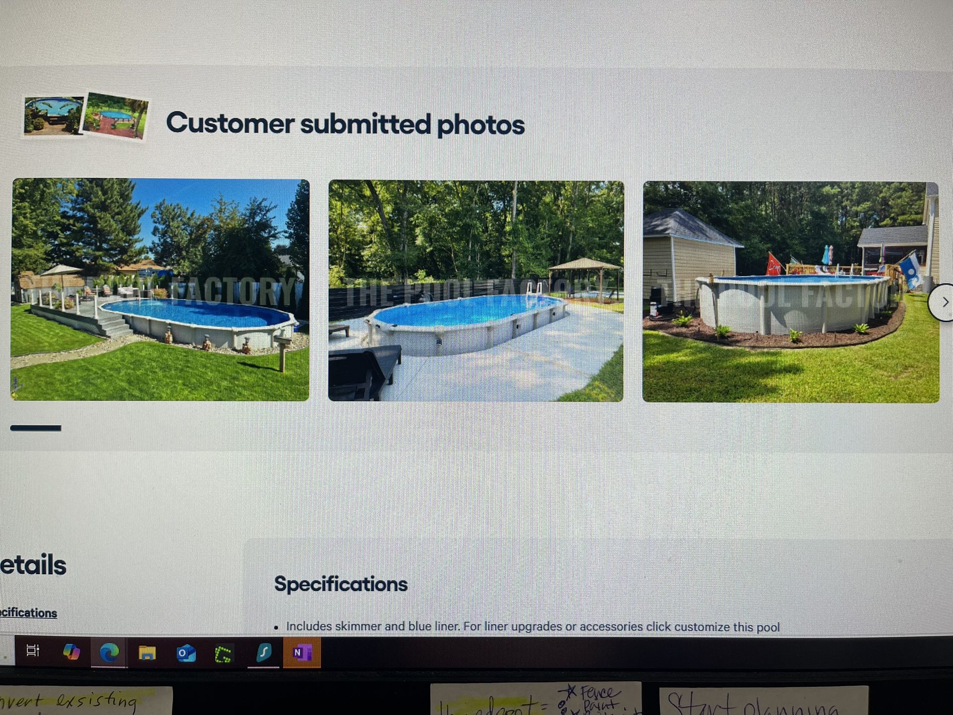 Get your summer ready with a 18‘ x 33‘ above ground or semi in ground metal swimming pool. Must sell due to a change in moving plans. The pool is referred to as the signature style by Pool Factory . It’s a unique light champagne color that blends well with any environment. It’s constructed with durability and longevity in mind. It comes with a 20 gauge liner in the pattern called Boulder Beach. All information is available online at Pool Factory This beautiful pool stands 54 inches tall with a water level at approximately 50 inches. The extra add-on parts we have is a 1.0 HP cartridge filter system by Hayward stream. It’s a low maintenance cost-effective cartridge system. The pool ladder and ladder mat the foam core base corners, floor liner pad, large roll of side wall foam with adhesive, and a solar cover. Our loss is your gain. We will sell the complete Pool and package for $3500 With the add ons It’s available to be seen. Videos, how to install etc. Is all on Pool Factory website along with pictures and additional add ons that are available. Let us know if you’re interested. We have the paperwork available too, some of the pieces are still boxed. The pool factory has additional add ons etc. that you may want to add. We can deliver.