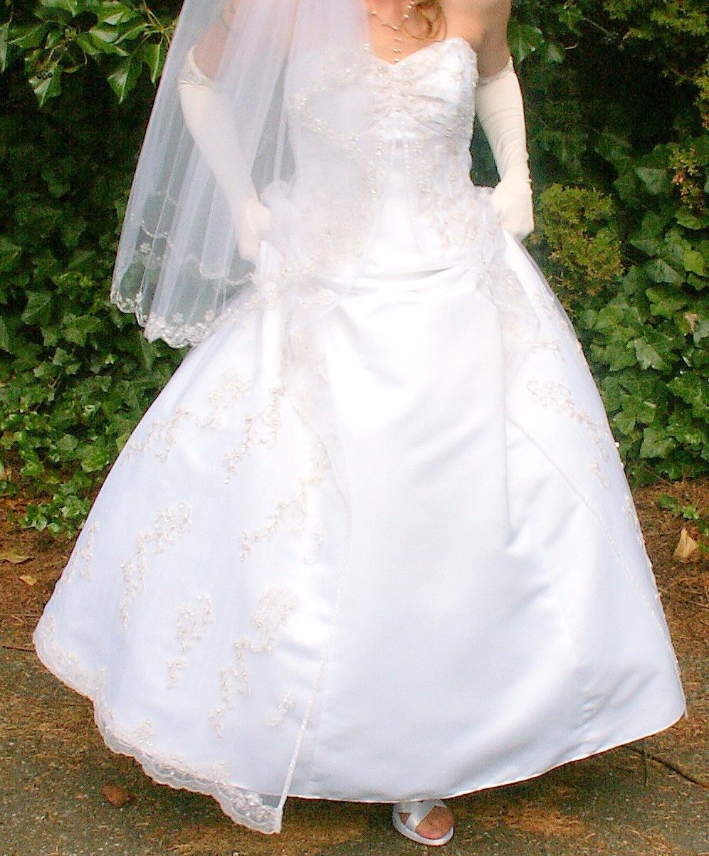 I couldn't upload all the pics but I have the dress(Size 4), petticoat(for underneath the dress-makes it more puffy), vail and strapless bra(36A). The bottom is a little dirty from walking around but nothing major, I tried keeping it up as much as possible. Just needs a little cleaning. $400 OBO