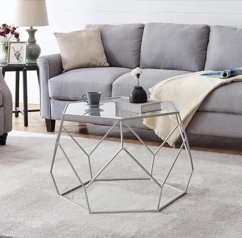 FirsTime & Co. Silver Geometric Glam Coffee Table, American Designed, Silver Product is BRAND NEW in Box (see photos). 3 Available Retail $149.95 + tax Our Price: $50! Pickup will be from our office, 1 minute from the 15/Ontario Ave Exit. Payment accepted in cash or via Zelle at pickup.