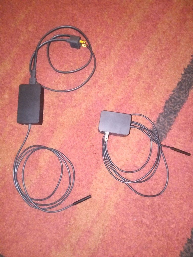 (2) MICROSOFT SURFACE CHARGING CORDS -HAVE SEVERAL SO THESE WERE ALMOST NEVER USED -ASKING JUST 25 FOR THE PAIR OR BEST OFFER THANKS!
