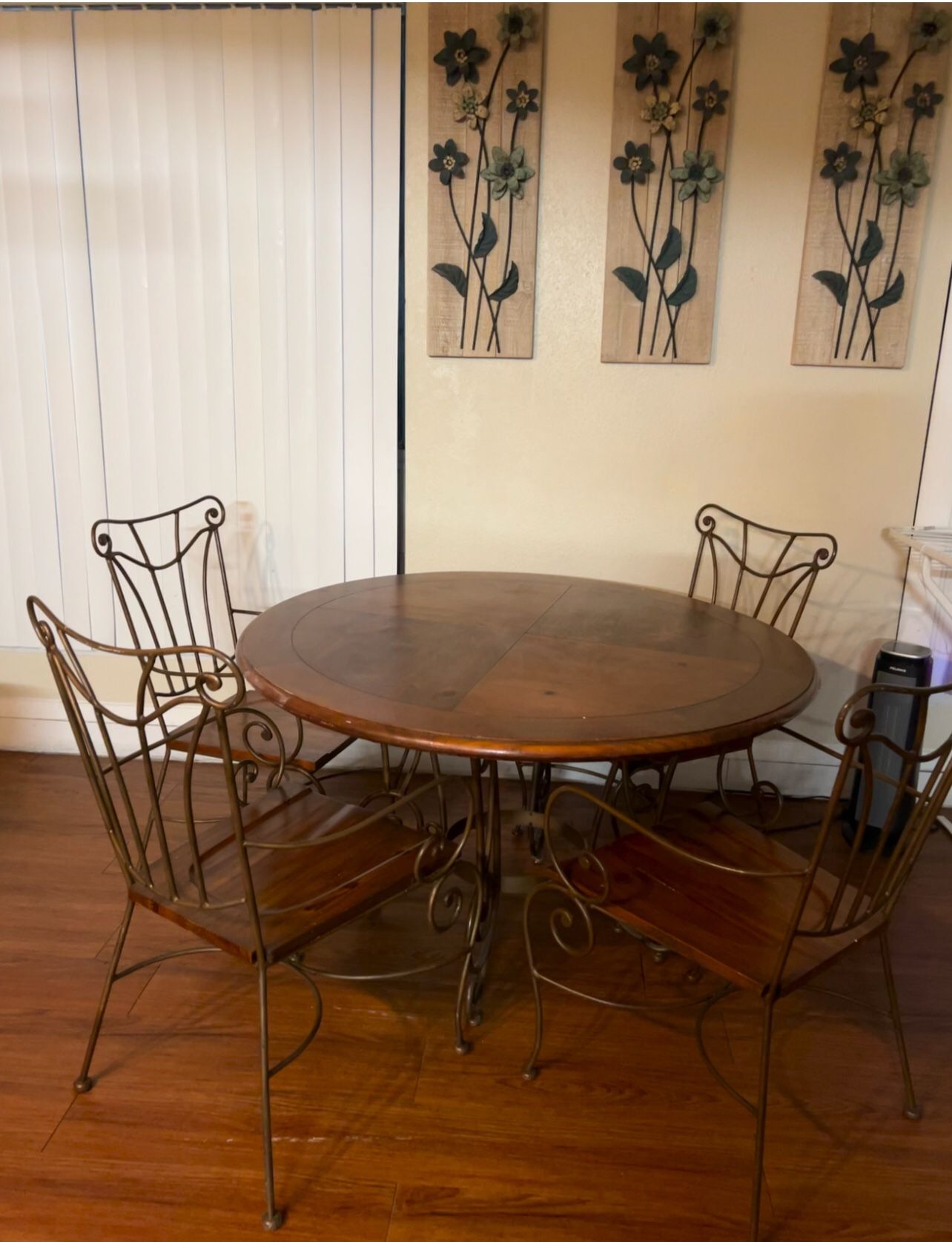Heavy Metal Metal Dinning Table and 4 Chairs with Wooden Seat Diameter 48 Inches