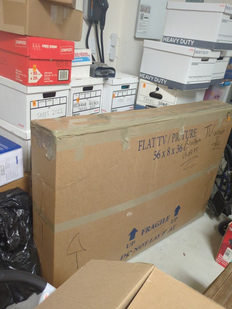 It was packed for moving, but does not fit in the new house. The box measurements are 56x8x36. The diagonal measurement is approximately 63. It is BIG And it will be heavy. TV works!
