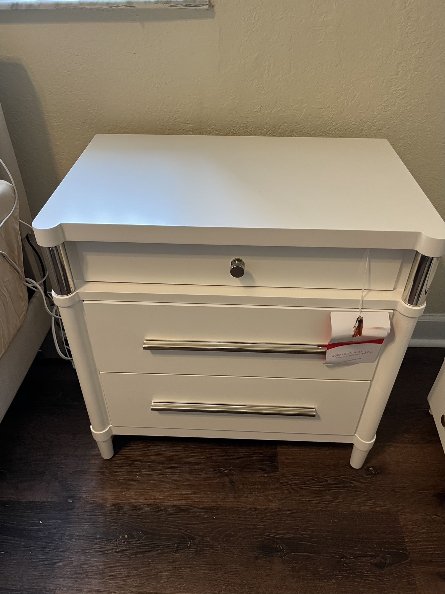 WHITE 3 Drawer Nightstand - Device Chargers π