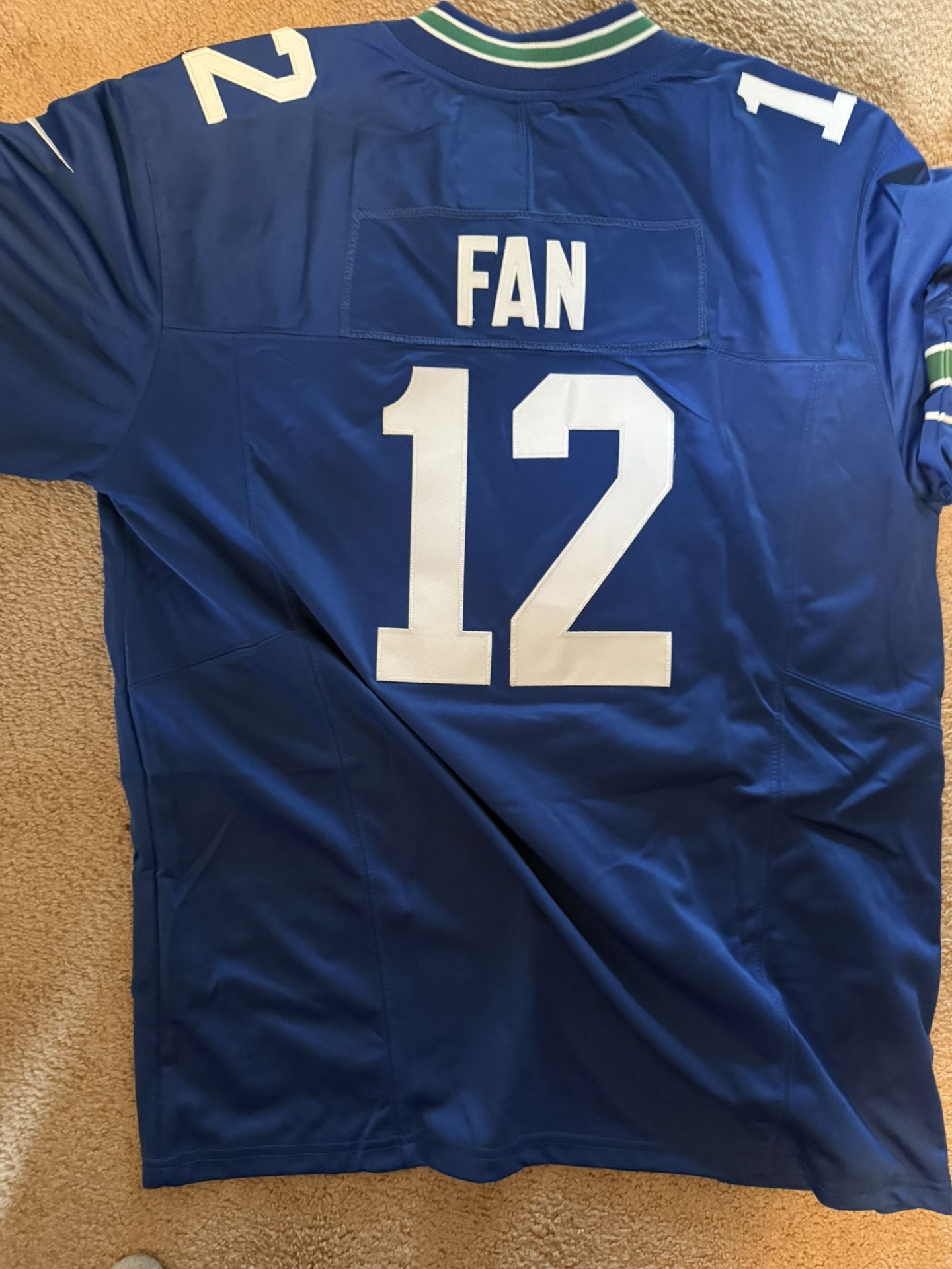 Brand new tags on perfect condition stitch numbers very nice jersey size large extra large double X and triple X available. Buy two for 125 go Hawks.