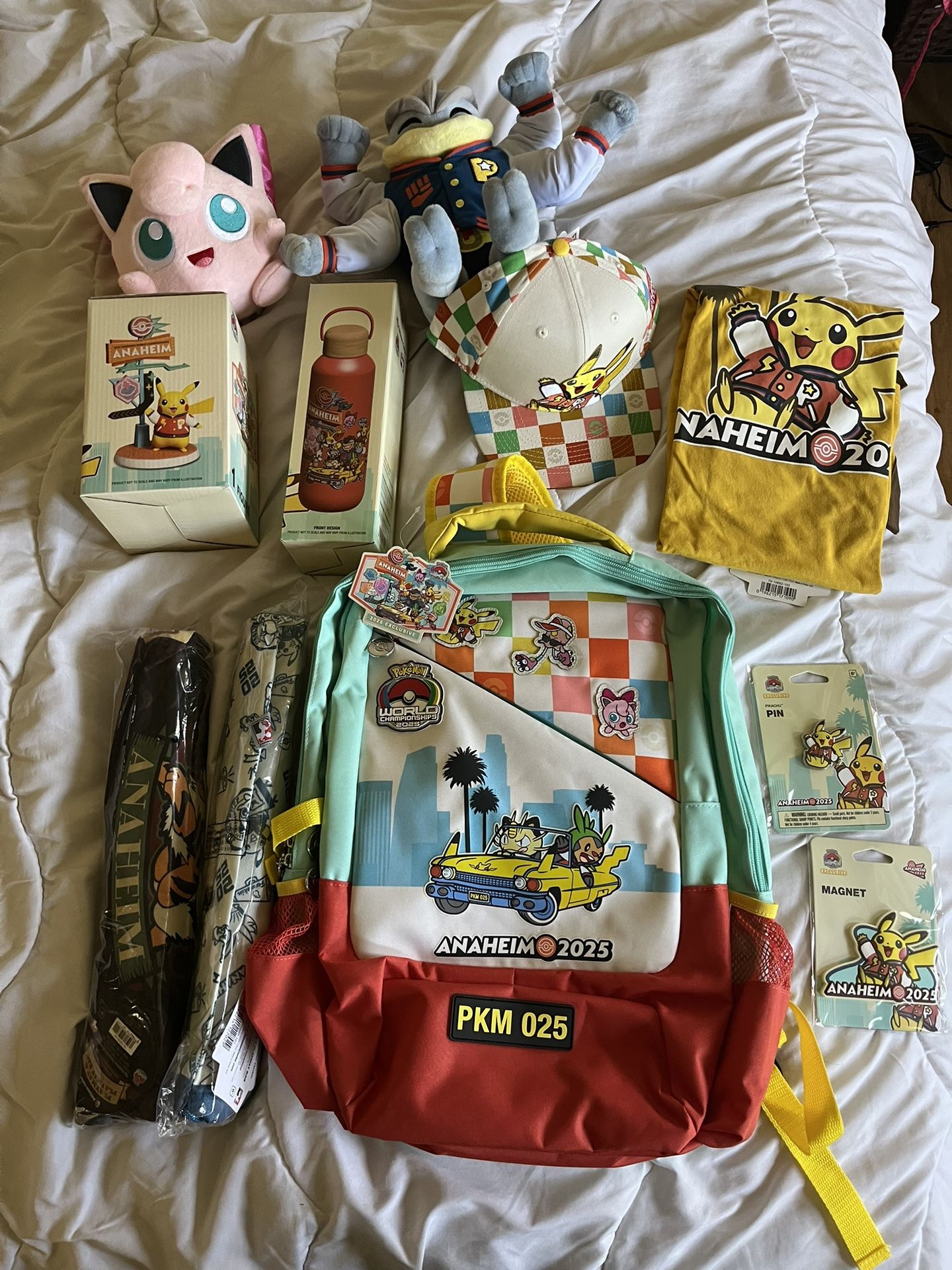 Pokemon Worlds 2025 Merchandise - Not $1 - Pickup or meetup near Lakewood - Cash or Pokemon TCG Trades (Slabs preferred) - Can work a deal if you take everything - Boogie Board: $130 - Backpack: $90 - Playmat (Varsity): $40 - Playmat (Arcanine): $40 - Pikachu Figure: $45 - Water Bottle: $50 - Tshirt: $60 - Machamp: $60 - Duffle Bag: $300 - Hat: $50 - Jigglypuff: $50 - Pikachu Pin: $30 - Magnet: $20