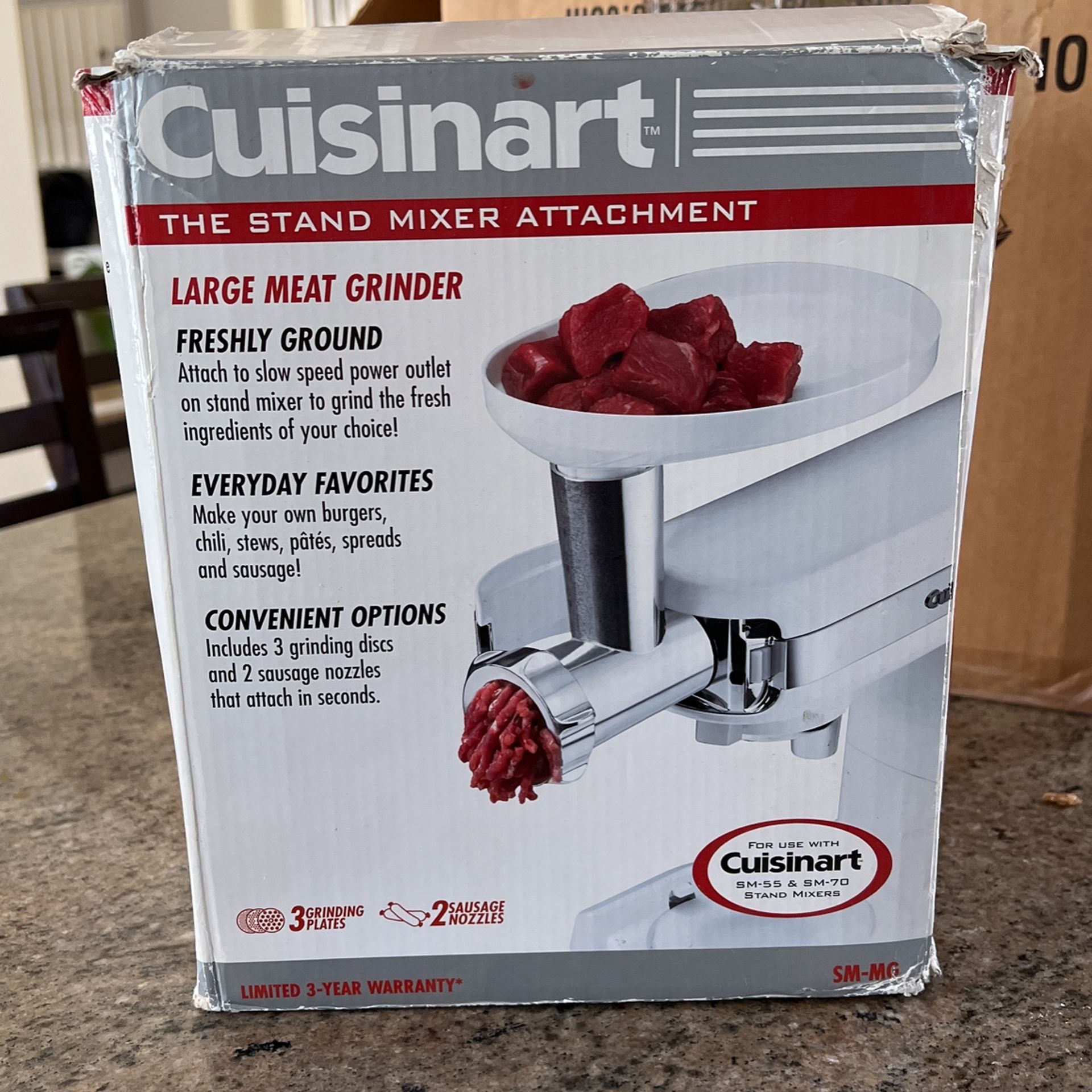 Brand new, never used Cuisinart large meat grinder for the stand mixer. We bought by accident the wrong brand, but ended up never taking it back. We bought it on sale for $94.99 Selling now for $75.