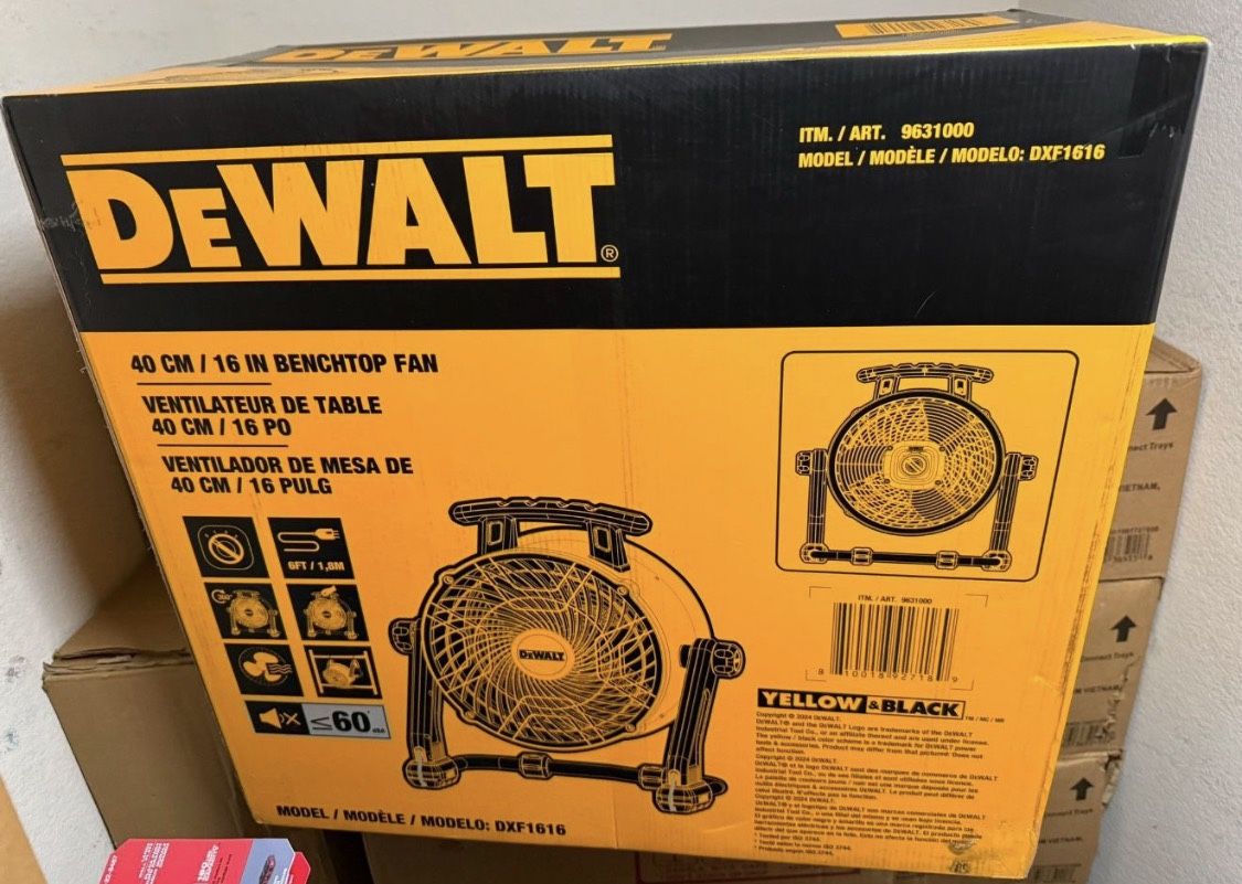 Dewalt 16 in. Yellow 3 Speed Benchtop and Hanging Drum Fan
