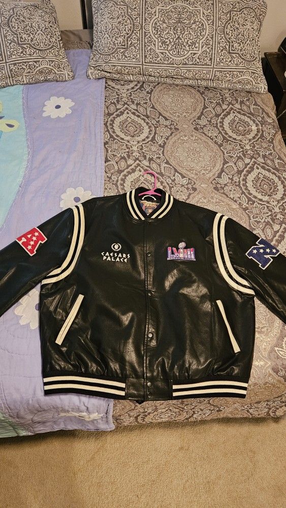 Brand New Never Worn Jeff Hamilton Leather Superbowl LVIII Jacket, received as a gift.