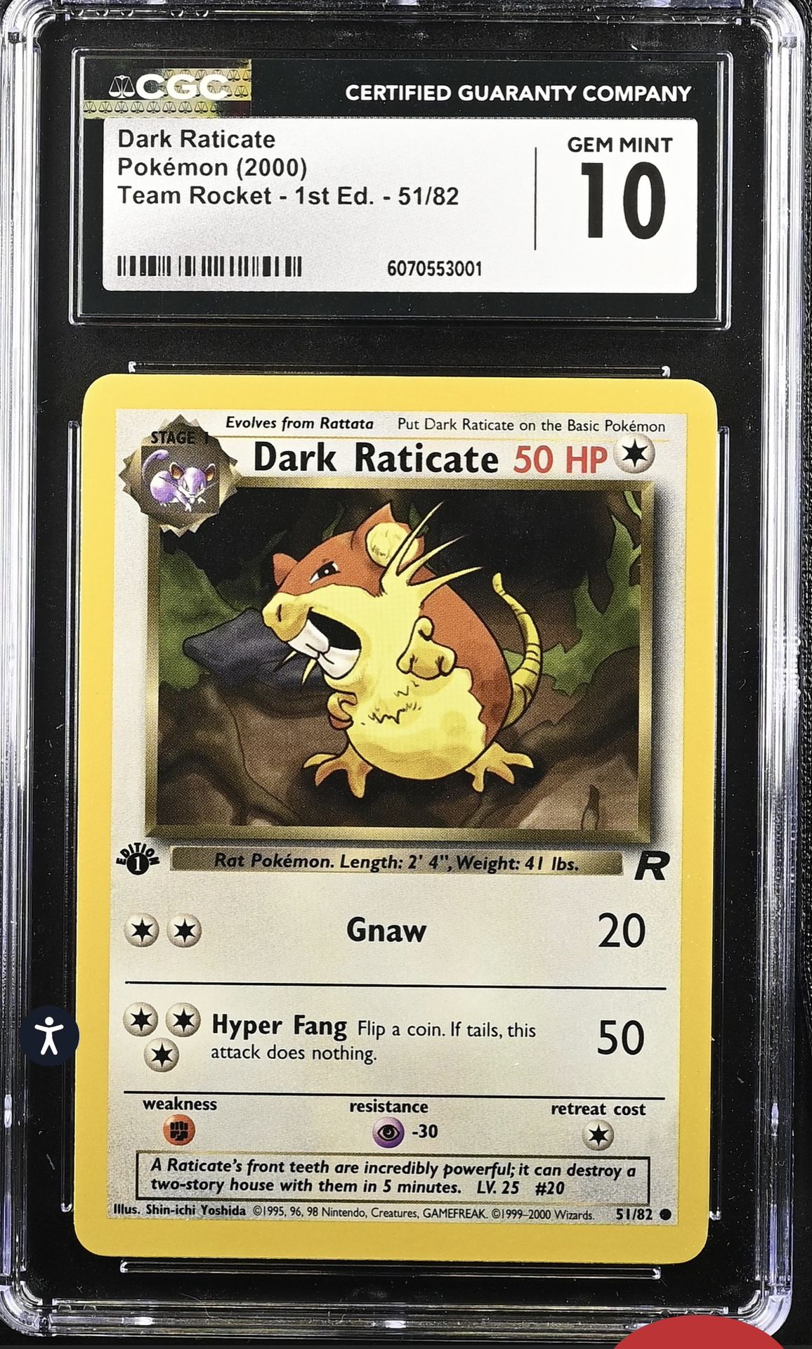 DARK RATICATE POKÉMON (2000) TEAM ROCKET —FIRST EDITION CGC 10 GEM MINT