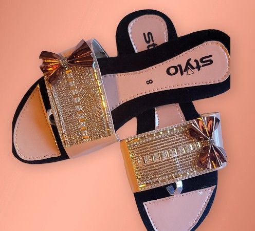 Brand new without tags Color pechy with Rhinestone very unique style woman's Sandals. Heel height ....flat (0.-1) Size 7.5 38