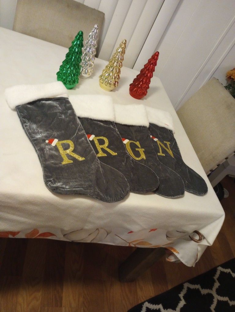 4 new Christmas boots, letters ..R,G,N. 4 botas nuevas navideñas, letras ..R,G,N