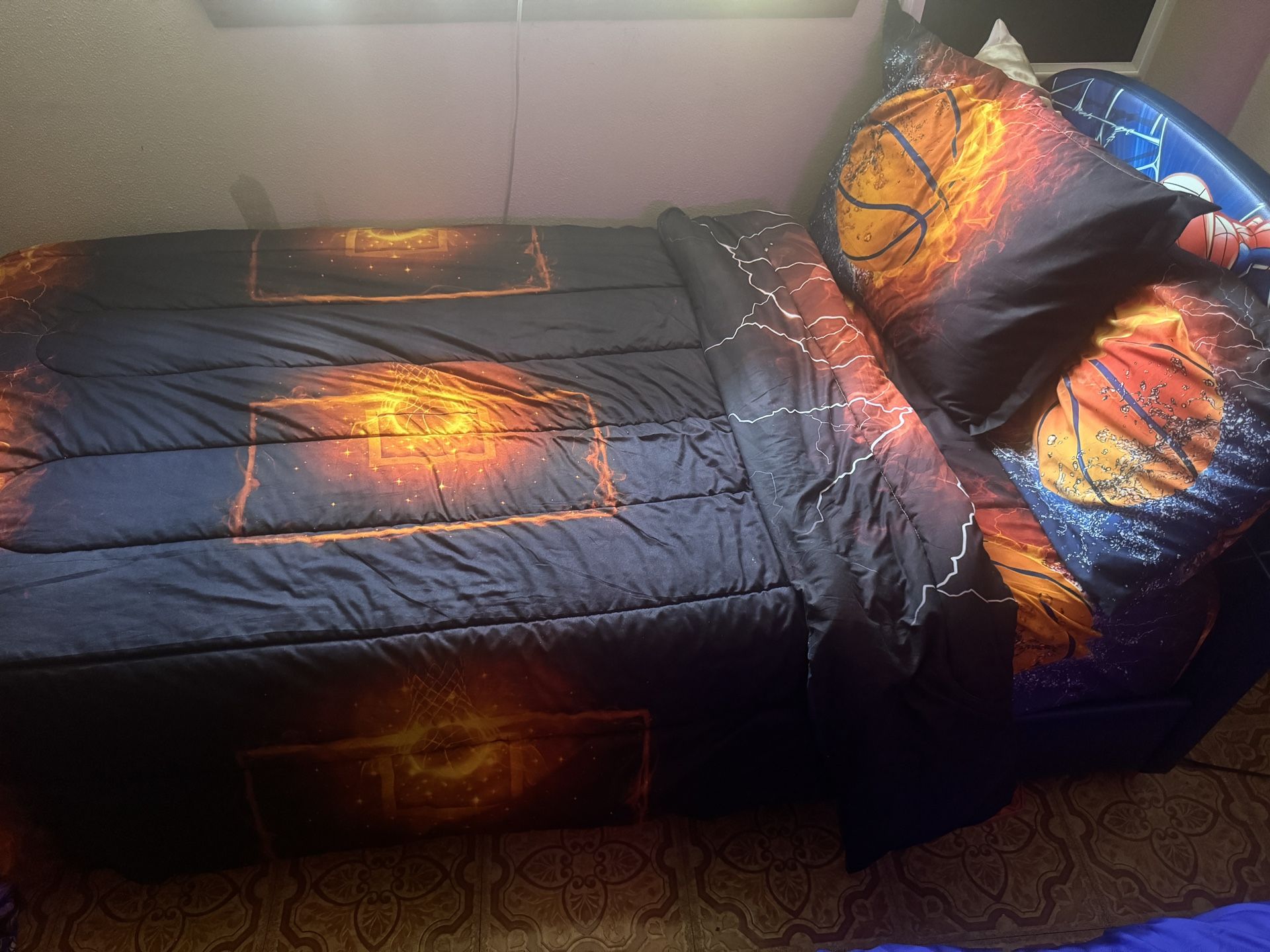 Boys Upholstered Twin Sized Bed W Mattress And 1 Bedding Set