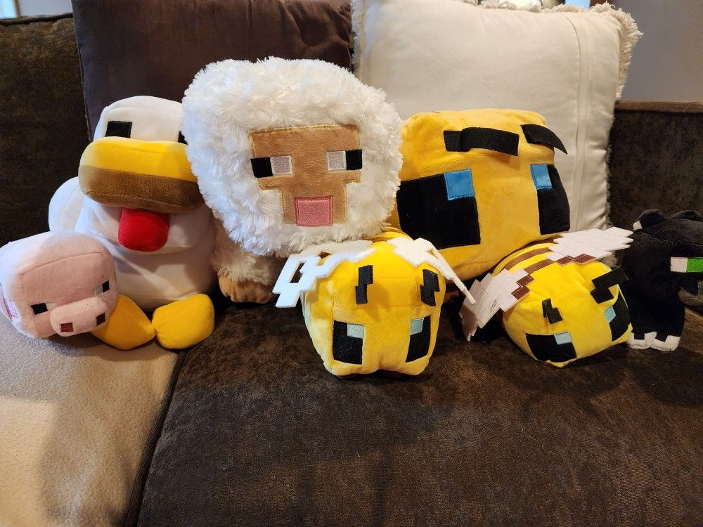 Minecraft plushie bundle -3 bees(2 small and 1 big) - chicken(big) - Sheep(big) -Pick up only -Cash only