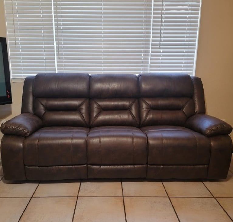 Dimensions: H 42.5” x D 41.5” x W 91.5” inches; Weight capacity: 300 lbs. per seat; Solid wood and plywood frame with metal reinforced seat; Polished microfiber upholstery Attached back and seat cushions; Tab pull reclining motion; (Brand New), bought it from “The Home Depot”, but unfortunately, didn’t fit in the place, I need to buy smaller one; Retails online $1149.99 as shown in the pic. Cash & Pick up only. No deliveries, you need a truck & someone to help you. Located in Peoria, 85381. you need someone with you & a truck for pickup.