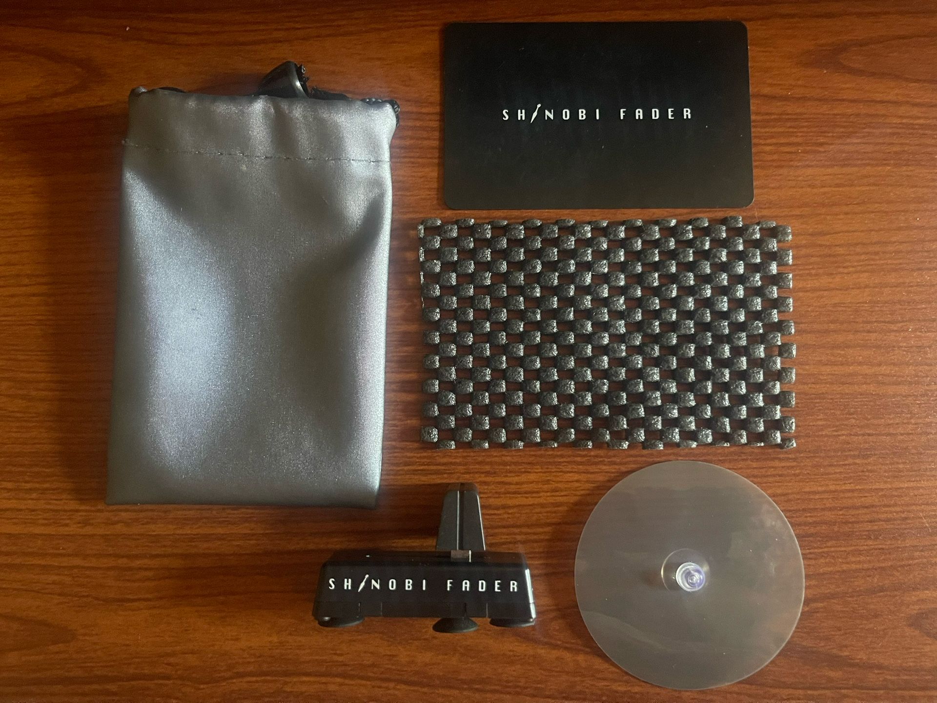 This is a portable dj fader that pairs with Shinobi DJ App. Great for practicing your cuts on the go! Works best with IOS device. Made in Japan.