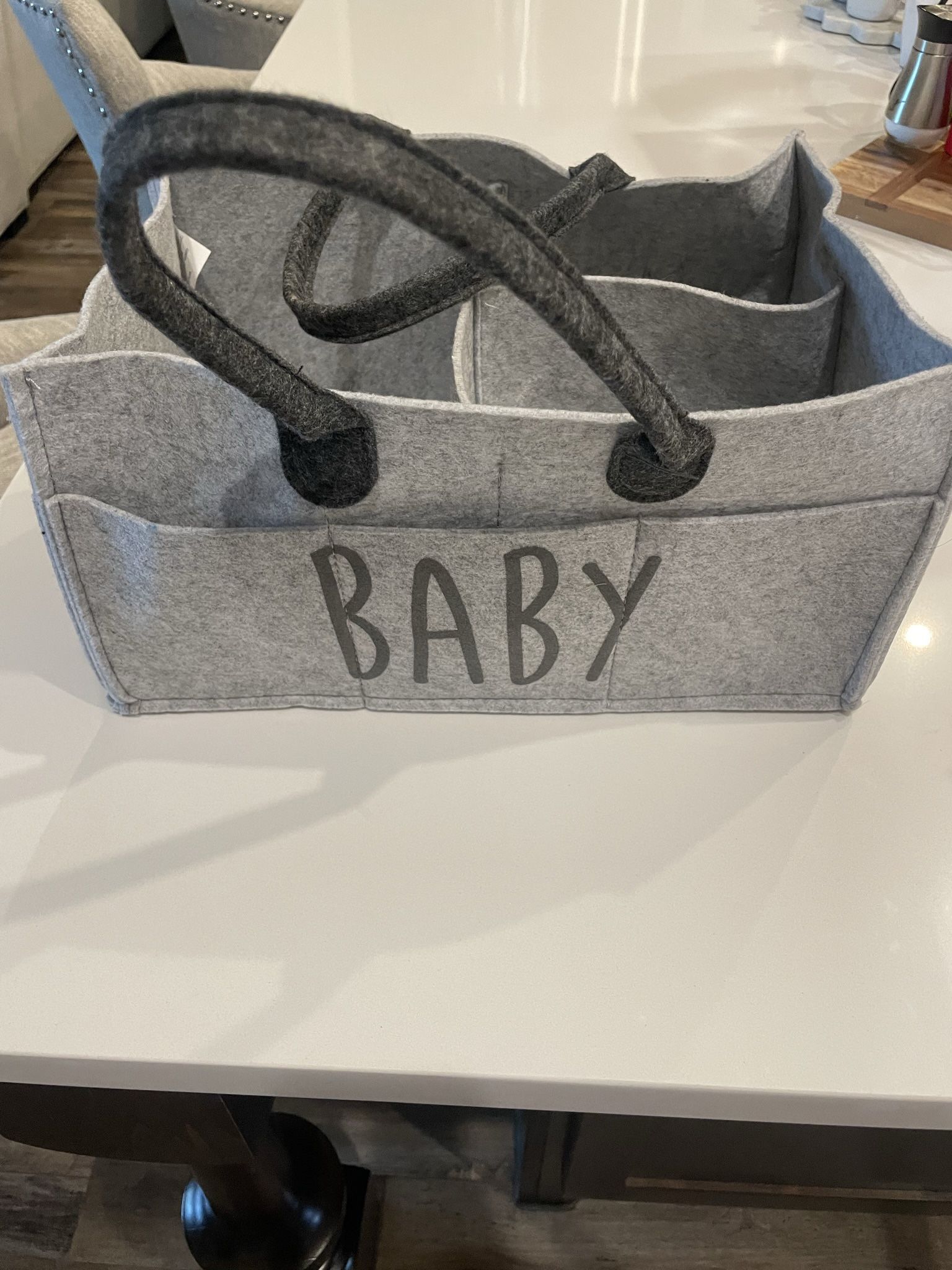 The Baby Diaper Caddy Organizer is a versatile and portable storage solution for baby products, stationery, and automobile essentials. With 11 compartments and a capacity of 8 liters, this gray felt caddy organizer is perfect for keeping items neat and tidy. The tabletop mount feature allows for easy placement on a changing table, car seat, or any other flat surface. Its compact dimensions of 14x10x7in make it convenient for on-the-go use, while the maximum weight recommendation of 20 pounds ensures durability. Some signs or wear but in good condition. Smoke free home.