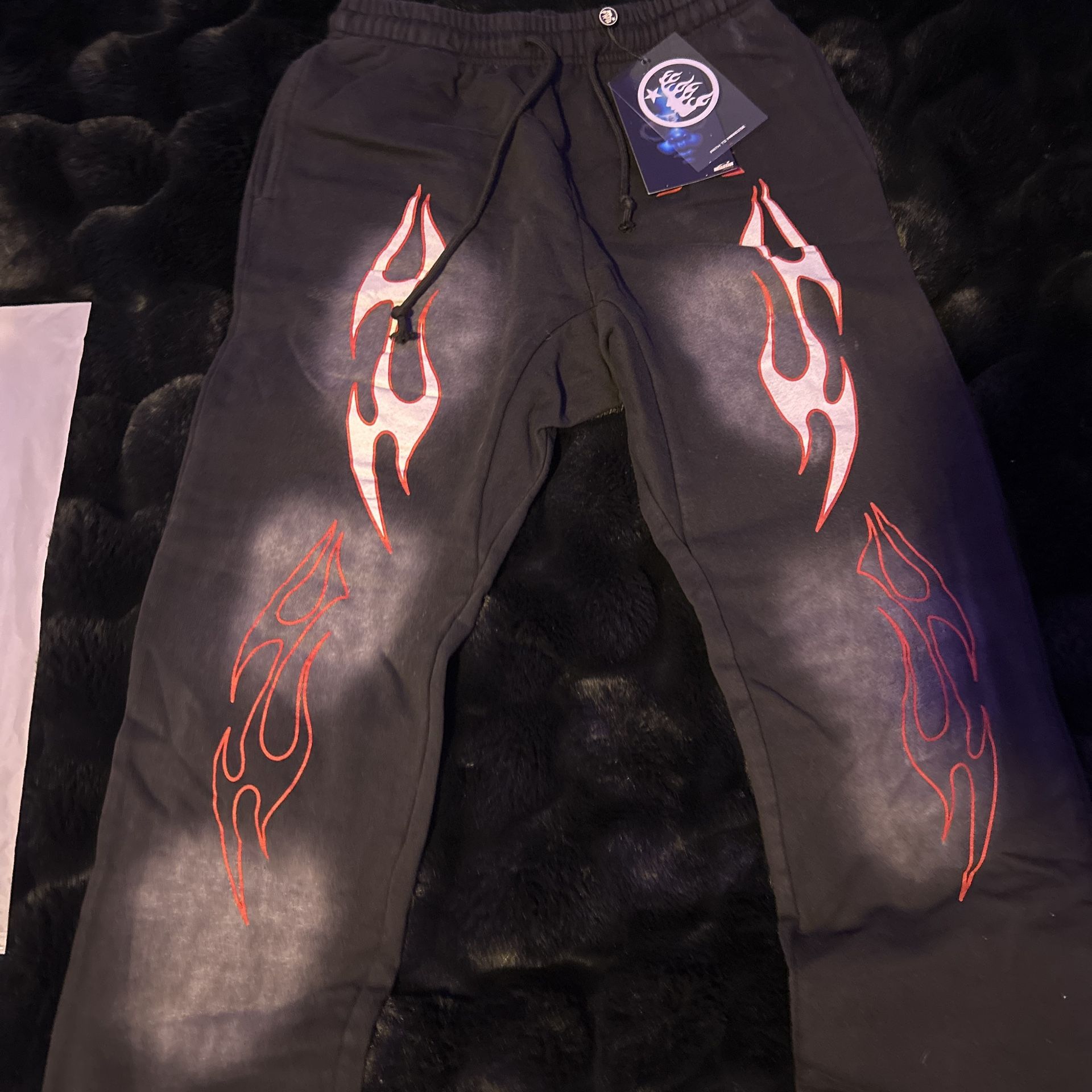 black red and white “hellstar” pants. size Large fits like a Medium