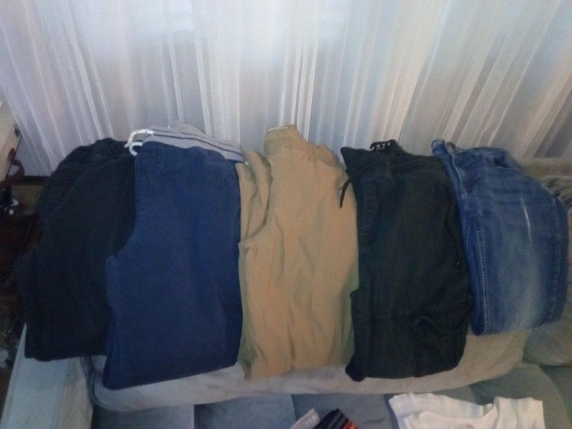 Boys size 10/12, 12 pants some are new 3 tank tops (one has paint ) and 3 undies, never used but have been in storage for a while
