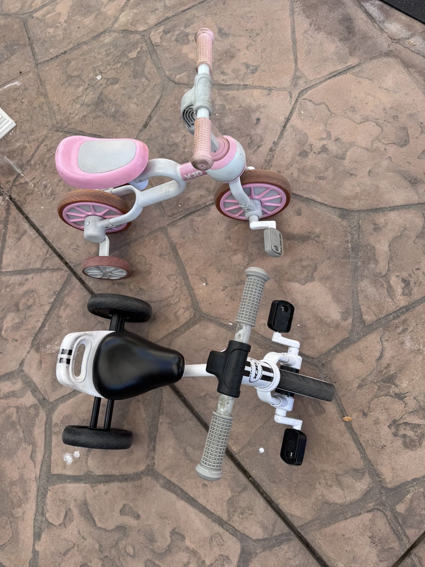 Balance bikes in great condition. Normal wear and tear. Easy for toddlers to use and gain balance skills. Can buy as a bundle for $50 (both bikes). Can buy separate $30 (each). Bikes are ready to be picked up ;)