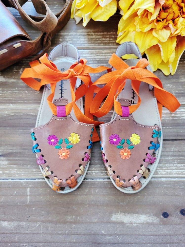 ⛔️⛔️ LADIES AND GENTS!!! PLEASE BE COURTEOUS OF MY TIME. IF YOU CAN'T PICK UP AND PURCHASE IN A REASONABLE AMOUNT OF TIME, AND YOU ARE NON-COMMUNICATIVE DO NOT MESSAGE ME.⛔️⛔️ SIZE 2 BY FAMAH ABSOLUTE BEAUTY! THIS ARTISANAL HUARACHES EXUDES THE MEXICAN CULTURE AT ITS FINEST! THE ARRAY OF BRIGHT AND BOLD COLORS WITH EMBROIDERED FLORAL ON THE SANDALS ARE JUST GORGEOUS. AN ORANGE LACE IS WORN TO WRAP YOUR ANKLES. KEPT IN EXCELLENT CONDITION. SELLING $10 AS IS. PRICE IS FIRM AND IS NOT NEGOTIABLE. CASH TRANSACTION ONLY. ***I DO NOT DO PRICE BUNDLING DEALS. PRICES ARE AS IS!*** ➡️PLEASE MESSAGE IF YOU ARE SERIOUS AND READY TO PICK UP/PURCHASE ONLY! NO HOLDS!⬅️ PICK UP/MEET UP IN MERCED. NO DELIVERIES.