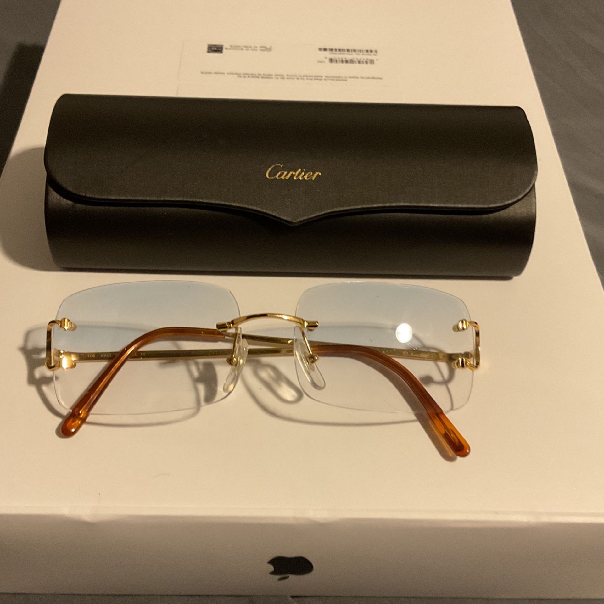 Cartier C Decor Gold Sunglasses w/original case and 2 pair of lenses. 1 factory pair of Cartier lenses and 1 pair of light blue aftermarket lenses installed currently. Bought in 2021. $1500 original cost. $1350 OBO