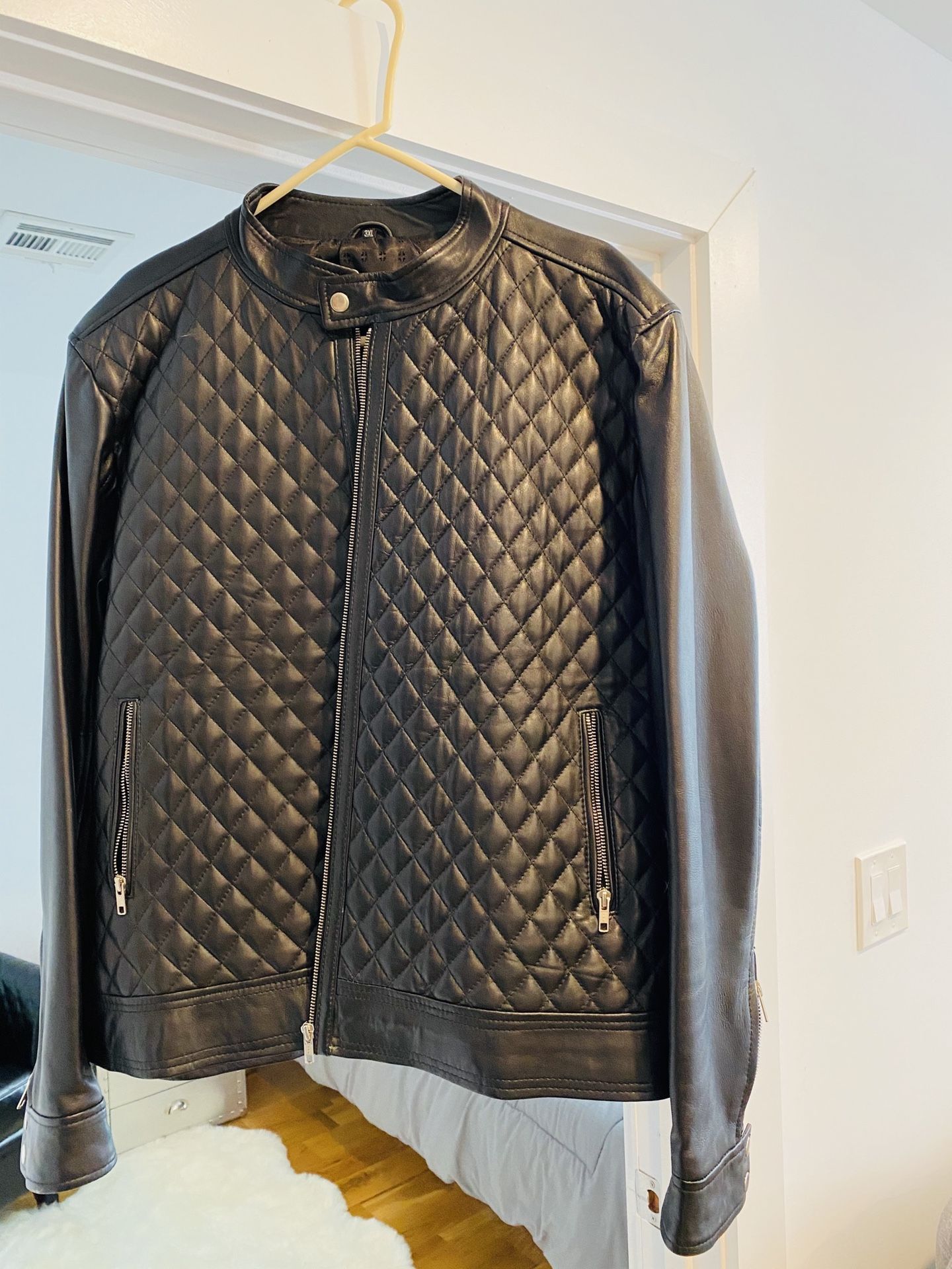 Moto Diamond Quilted Leather Jacket New XL - brand new never worn - silver zippers and cuff buttons - custom made paid over $400 doesn’t fit me so now selling
