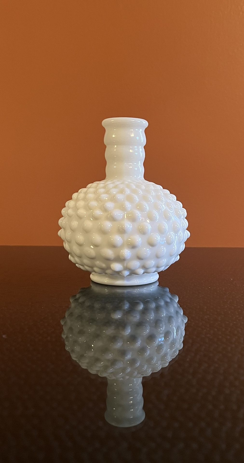 Vintage Fenton Bottle Vase Hobnail White Milk Glass Bud Vase Rounded 5”T 1”Wx4"W