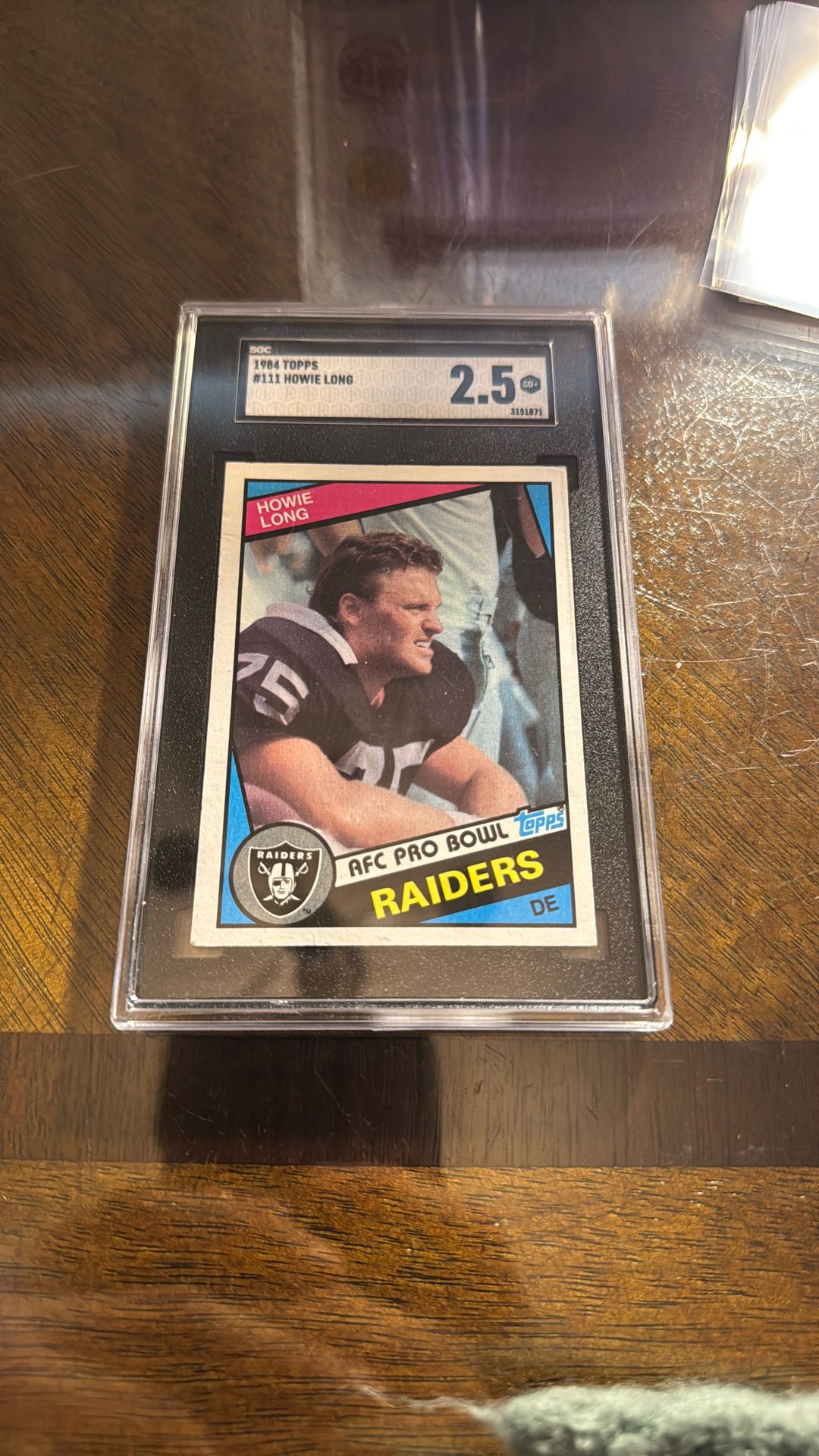 🔥 For Sale: 1984 Topps Howie Long Rookie Card – SGC 2.5 – Affordable Hall of Fame Classic! 🔥 Add a piece of hard-hitting NFL history to your collection with this SGC 2.5 graded 1984 Topps Howie Long rookie card! This is the iconic first card of one of the most dominant defensive players of the 1980s and a beloved Hall of Famer. ✨ Highlights 1984 Topps Howie Long – Rookie Card Graded SGC 2.5 – officially authenticated and encapsulated Classic Raiders era photo with great vintage appeal Perfect entry-level rookie for any collector Howie Long is not just an NFL legend—he’s a Super Bowl champion, Hall of Famer, and long-standing TV personality who remains one of the most recognizable faces in football. His rookie card is a staple of the 1980s hobby era and continues to be a reliable, fan-favorite collectible. This SGC 2.5 offers an affordable way to own an authenticated Hall of Fame rookie, making it ideal for new collectors, Raiders fans, or anyone building a vintage football PC. 📦 Ideal For Vintage collectors Raiders fans PC builders Investors looking for low-cost, low-risk Hall of Fame rookies Don’t miss the chance to snag this graded and authenticated piece of football history. A great display card at an unbeatable value!