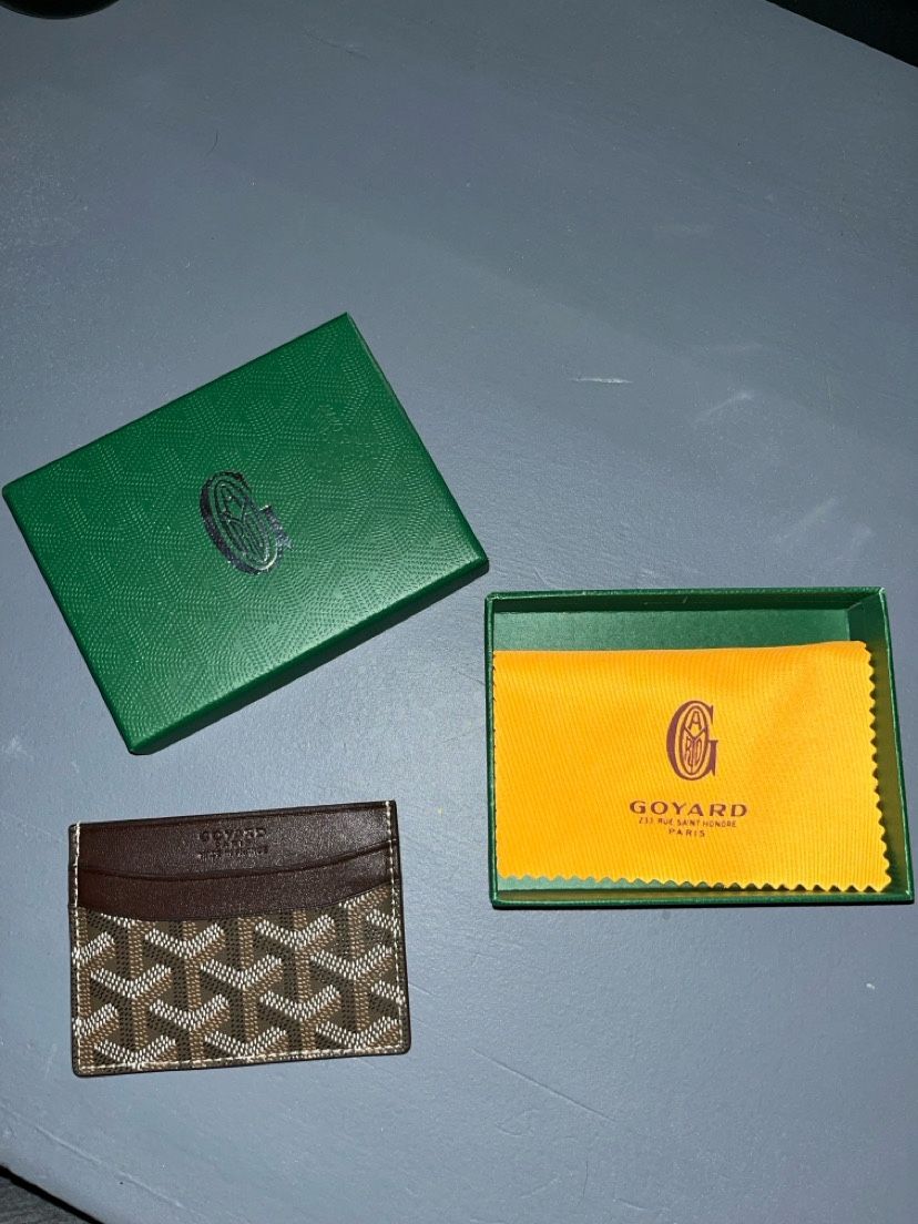 Brown card holder . Comes with cleaner and box. Brand new never used