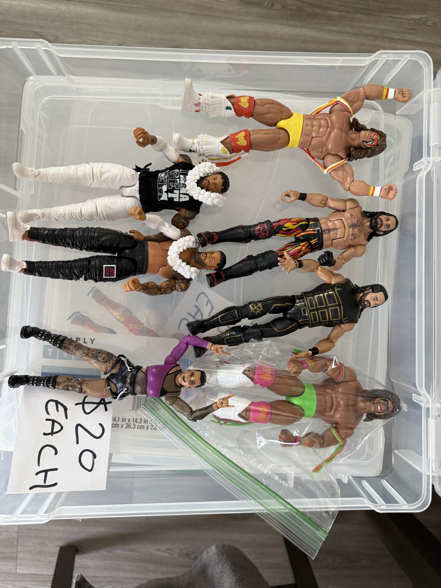 SALE $20 WWE Elite Action Figures $20 each Tags: Wwe John cena Roman reigns seth Rollins WWE champion CM Punk figures sale kids children gifts cheap Brock lesnar drew McIntyre AEW tan wrestling wrestlers