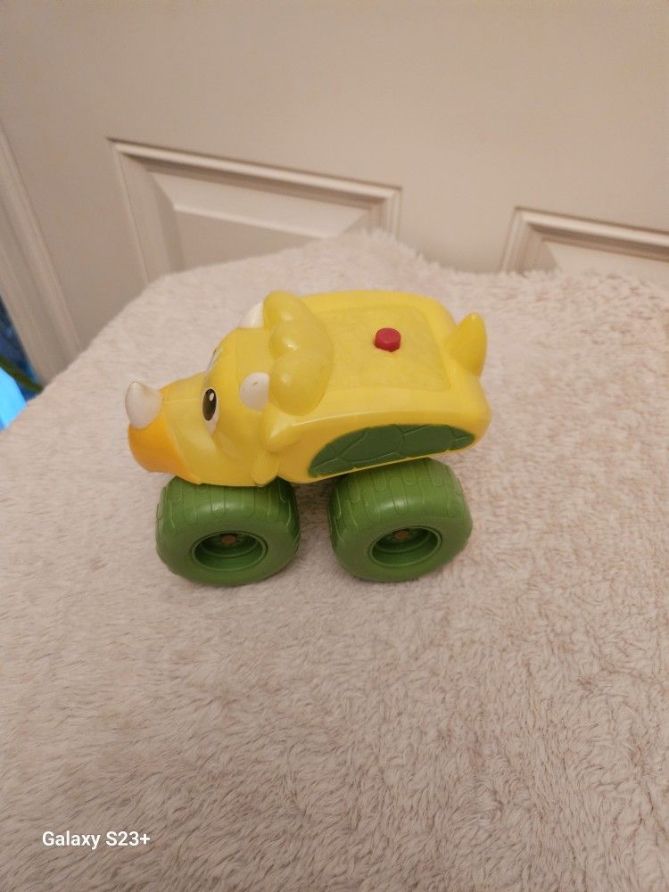 Dino Truck beeps horn and color changes. He's by visiting grandson smoke-free pet free home