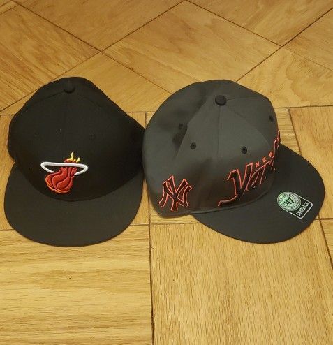 New York Yankees 47 snap back one size and New Era Miami Heat Fitted Hat size 7