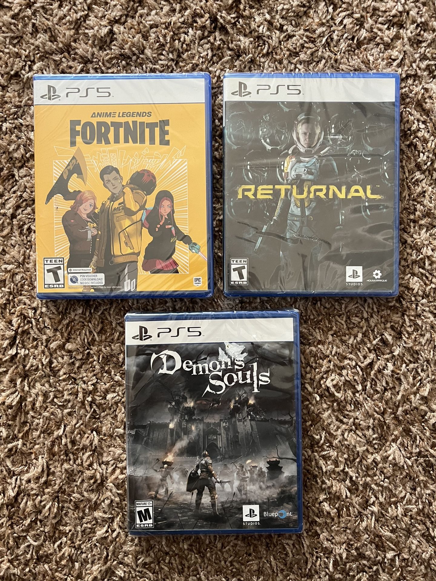 PS5 Video Fames - 3 Factory sealed games Fortnite - Anime Legends - PS5 Returnal (PS5) Demon's Souls - PlayStation 5