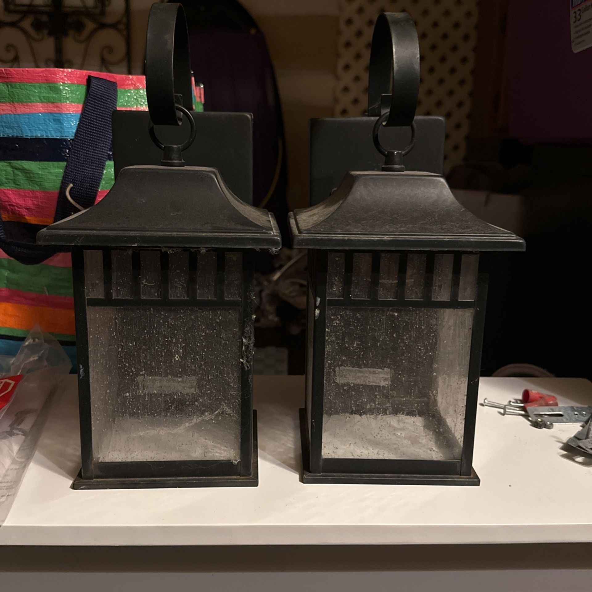 Very cute. Work well. We upgraded to lights that include an outlet for holiday lights. Need a light cleaning. Price is for both. Located near Aurora Premium Outlet.