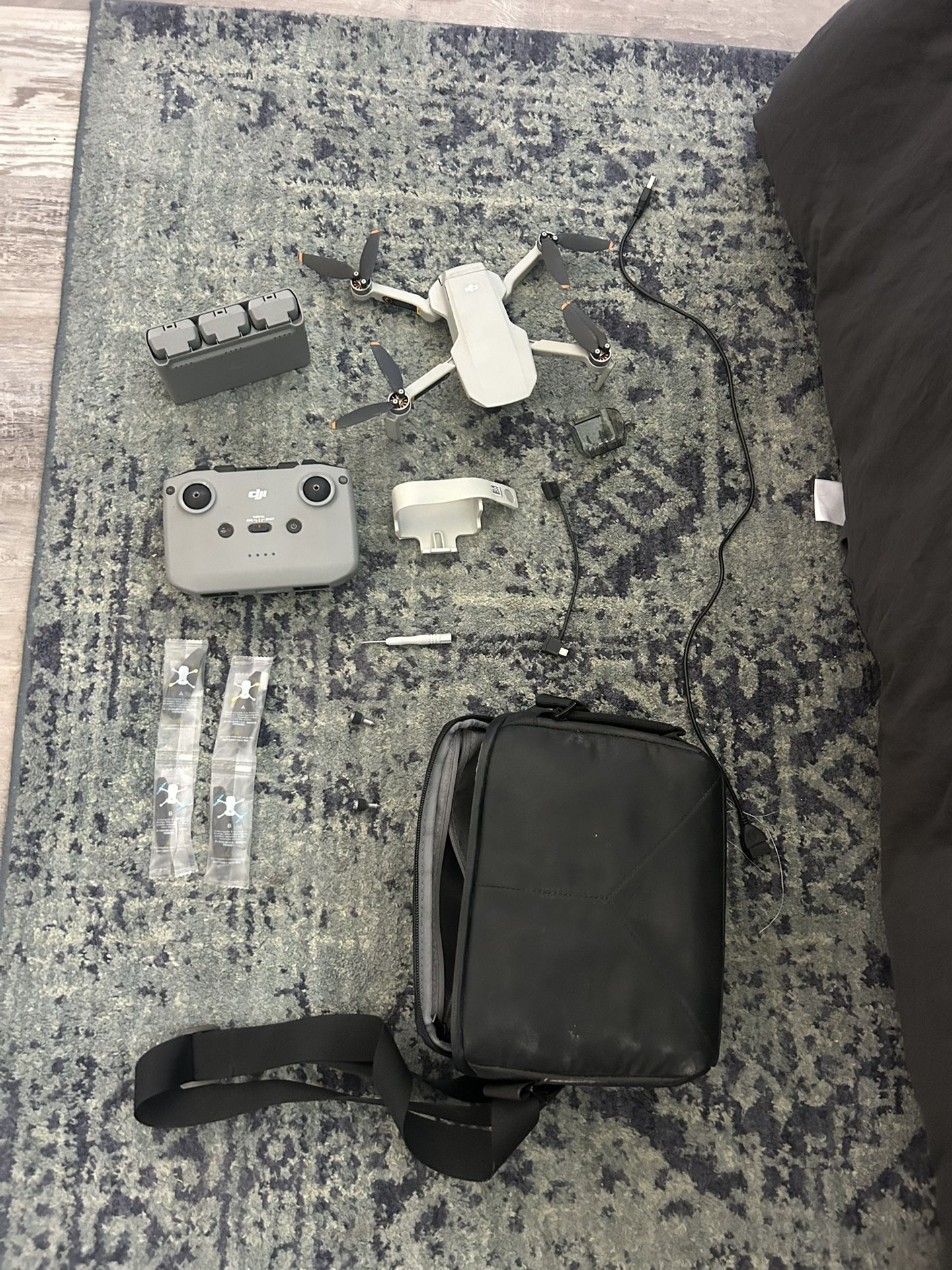 Selling a complete DJI Mini 2 Fly More Combo. This drone is lightweight, beginner-friendly, and perfect for capturing stunning aerial photos and 4K video. Everything is in excellent, lightly used condition. EXCEPT Camera is broke, I flew it into a wall. What's included in the combo: • DJI Mini 2 Drone (with propellers installed) • DJI Remote Controller (RC-N1) • Three (3) Intelligent Flight Batteries (visible in the charging hub/battery photo) • Two-Way Charging Hub (for charging all three batteries sequentially) • Spare Propellers (Multiple sets, still in original packaging) • Propeller Holder/Guard • Screwdriver and Spare Screws for propeller replacement • USB-C Communication Cable • Shoulder Bag (Black, for carrying all equipment) Key Features of the DJI Mini 2: • Ultra-lightweight (under 249g - no FAA registration required for recreational use in the US) • 4K/30fps Video • OcuSync 2.0 video transmission up to 10km