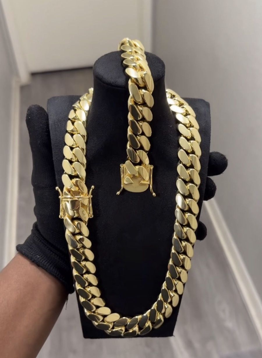 18k Cuban bracelet 8 inch Cuban chain 20 inch