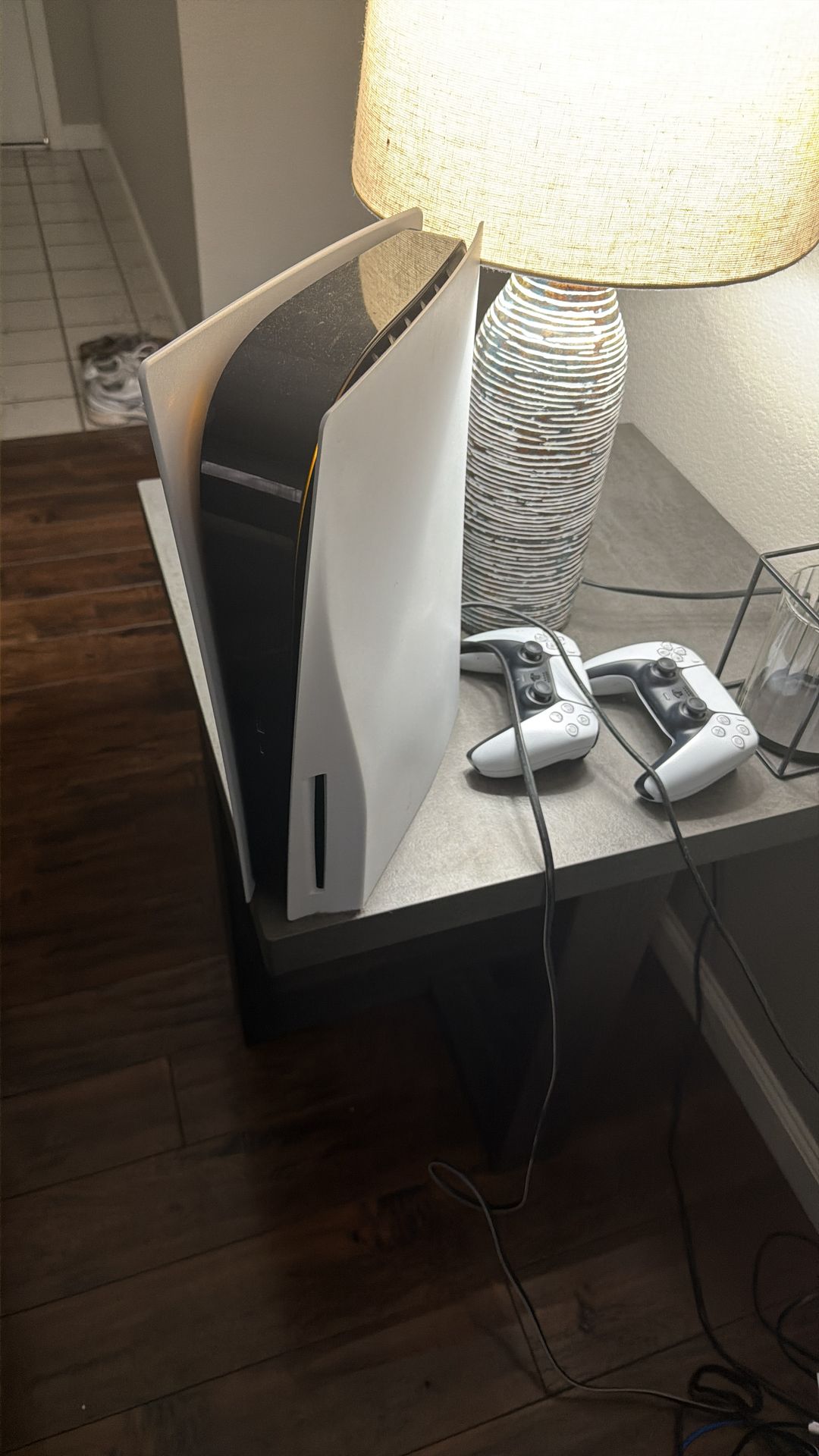 Selling my PlayStation 5 Disc Version in excellent condition. Works perfectly with no issues. Console has been well taken care of and fully reset for the next owner. Includes: • PS5 Disc Console • 2 Original DualSense Controllers • Power Cable • HDMI Cable • USB Charging Cable No scratches or damage. Adult owned, smoke free home. Price: $ 400 OBO Local pickup Only Message me if interested. Serious inquiries only.