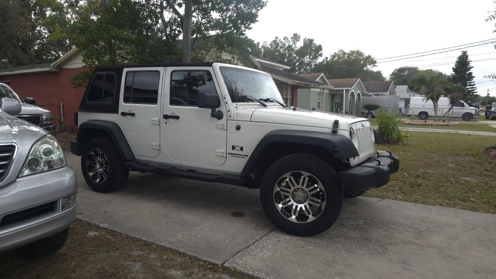 For trade: my 07 jeep wrangler unlimited x Mainly looking to trade for a 4x4 Truck, preferably one that has a gooseneck hitch. Will sell for $6250 cash. Currently has 216k and still runs great This wrangler runs great,engine and transmission are solid. Cold ac. Alll windows work. Has working 4x4!! Has a newer top, led headlights and taillights. May consider a large enclosed or 24ft+ tilt trailer as well. Clean fl title in hand Clean fl title in hand