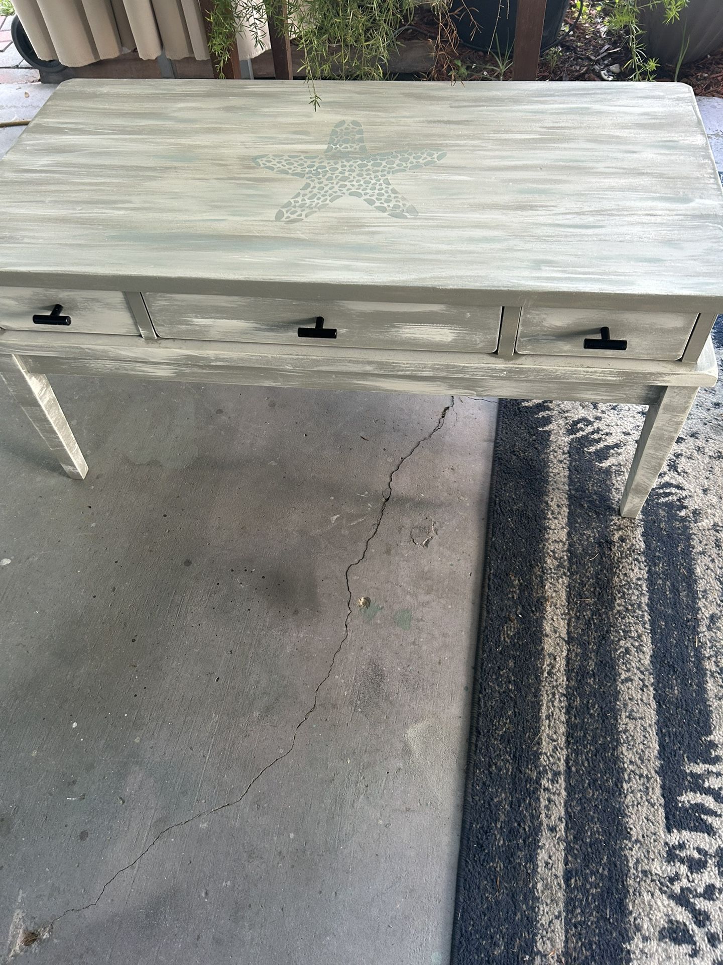 40x20x18” high Beautiful Coastal Coffee Table /3 drawers solid heavy piece 2 tone grey/white seablu