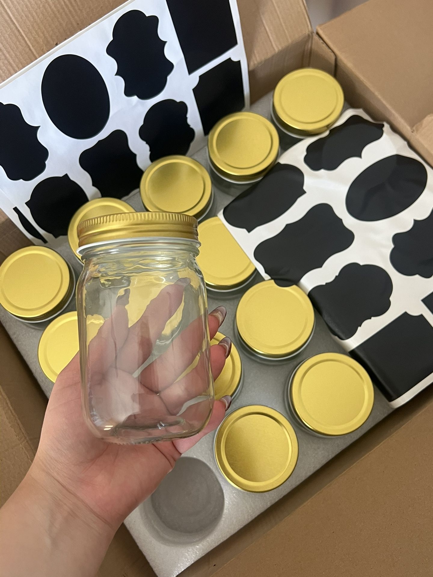 Brand new “mason jars” with labels have not used, don’t want them anymore