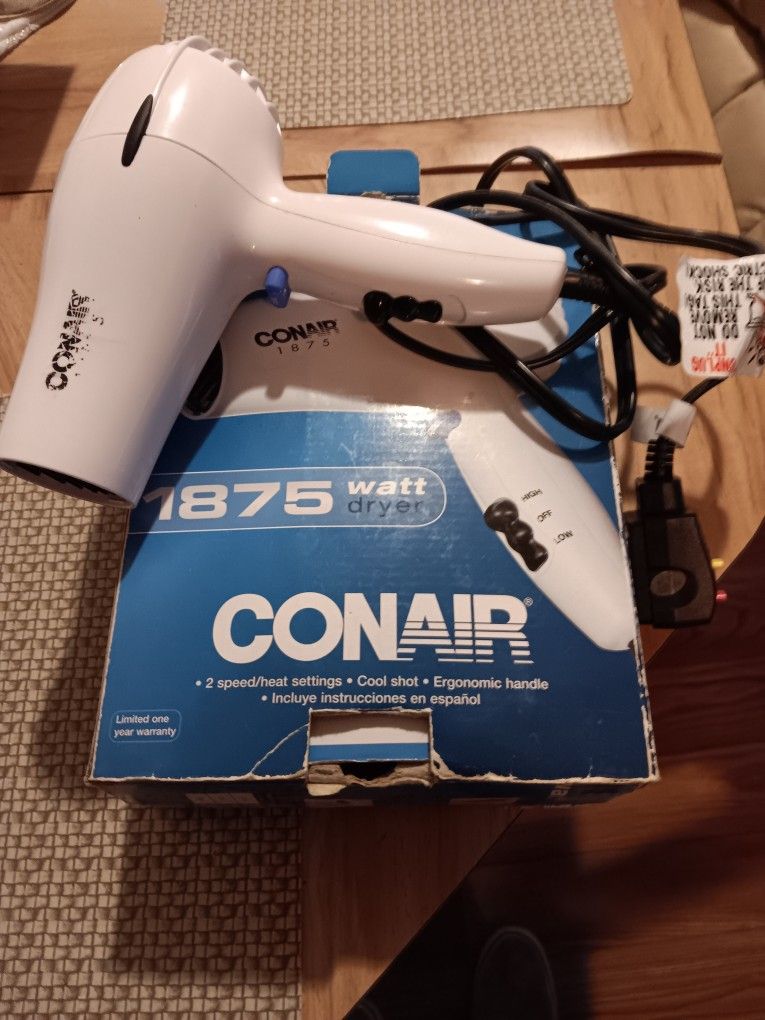 This small compact size hair dryer can be used both by men & women. The 1865 Watts blow dryer, white in color has 2 speed/ heat settings.Ergonomic handke included. The outket is 2 prong & this blow gruer is easy to pack for traveling, a good soace- saver dryer.