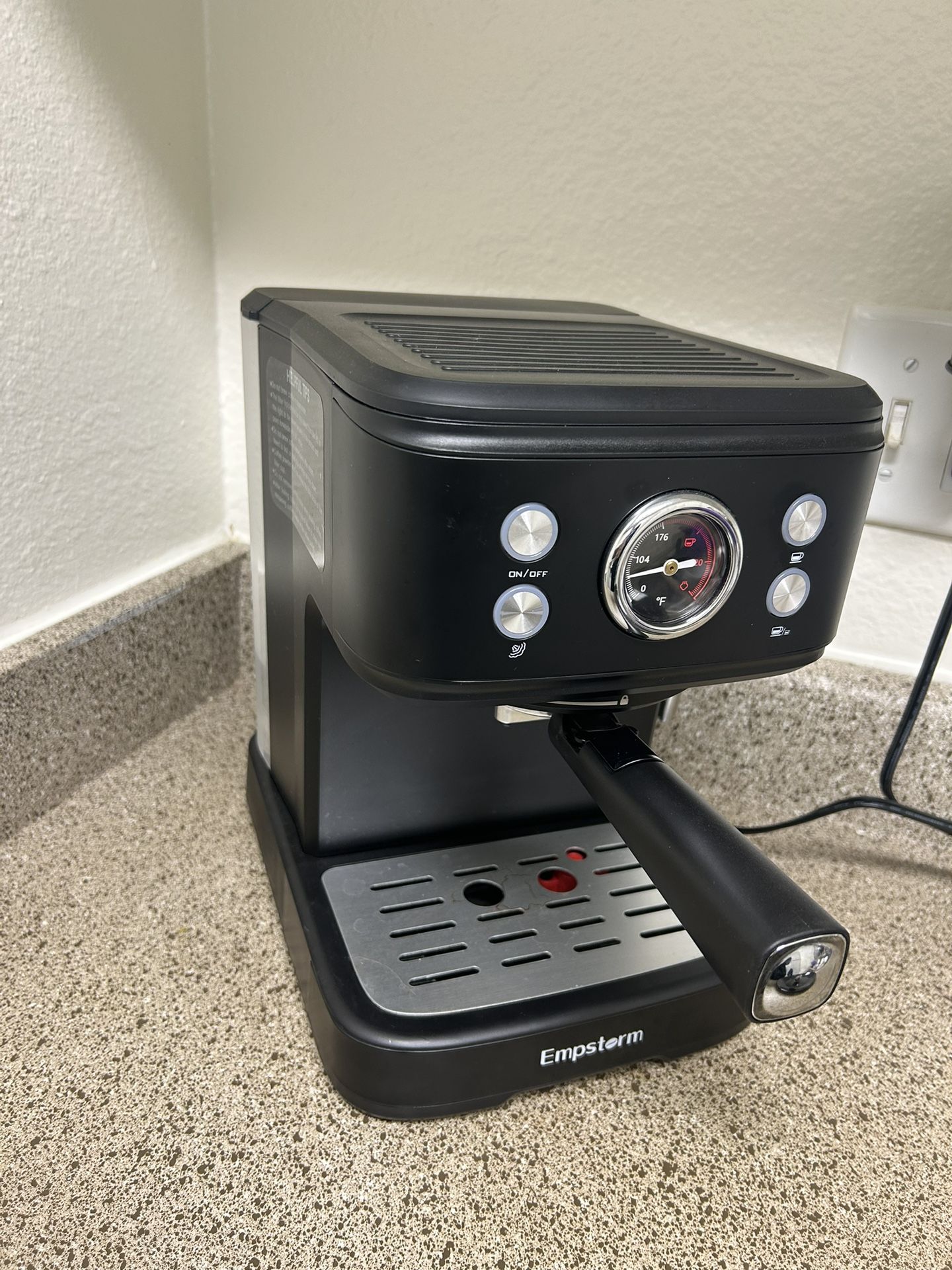 Comes with the espresso pod and the regular espresso handles. Milk frother on the side. The top heats up to warm up glasses for your espresso shots.